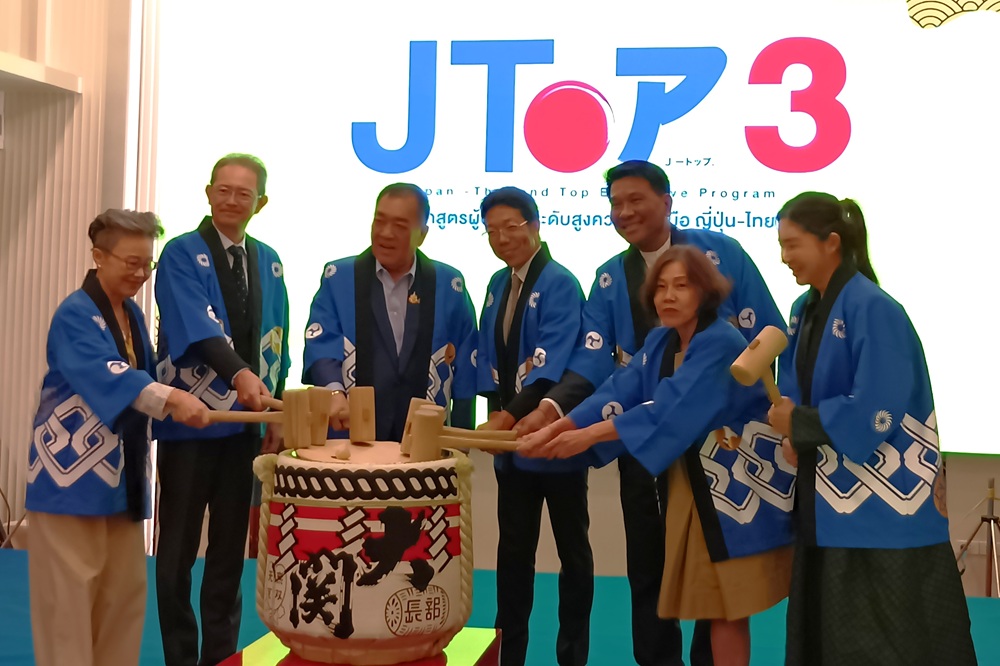4月29日、タイ商工会議所大学(UTCC)が開講する「J-TOP」第3期の開講式が開催され、佐藤弘康会頭(泰国三菱商事会社)が大久保文世副会頭(アユタヤ銀行(三菱UFJ銀行))と共に出席しました。