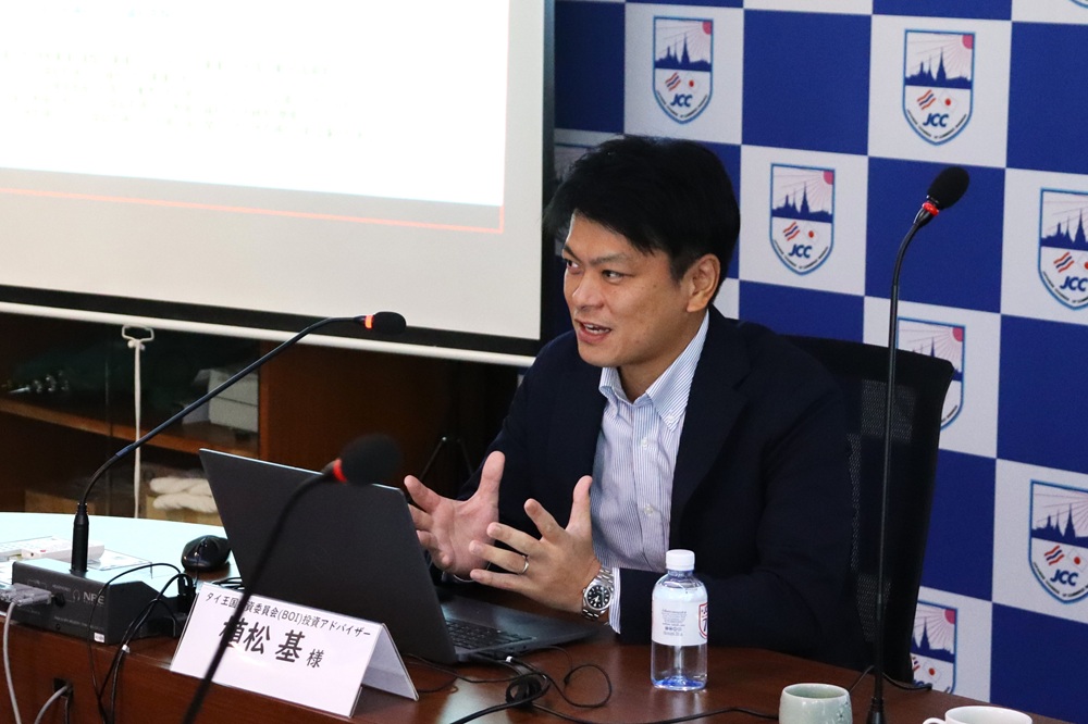 7月8日、情報通信部会(中川善登部会長:NTTタイランドリミテッド))は、タイ投資委員会(BOI)の植松基氏をお招きし、「AI社内導入に向けたBOI恩典の活用方法・申請方法」に関するセミナーを開催しました。