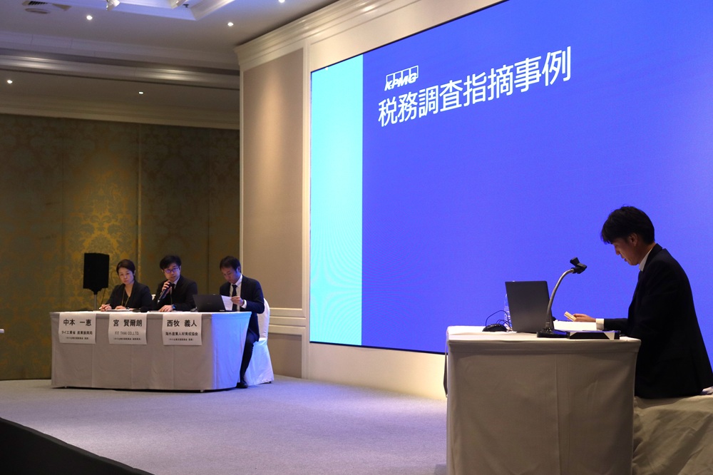 11月12日、中小企業支援委員会(戸塚雅己委員長:タイ矢崎コーポレーション)は、パタヤ市内にあるホテルで、第23回日系中小企業向け税務勉強会及び交流会を開催しました。勉強会では、KPMGバンコク事務所の伊藤進氏(税務部門ダイレクター)を講師にお迎えし、タイの税制概要について分かりやすく説明していただくとともに、参加者との質疑応答をパネルディスカッション形式で行いました。また、勉強会終了後は交流会を開催し、参加者同士のネットワーキングや情報交換を行いました。