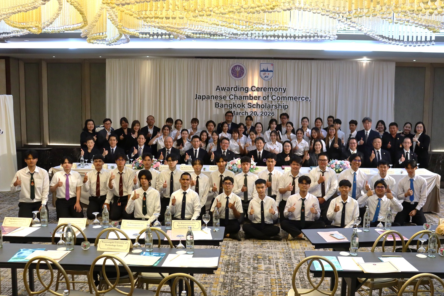 3月20日、社会貢献委員会教育担当(垣内啓志委員長:タイ国三井物産㈱)は、2025年度大学生奨学金授与式を開催しました。JCCの大学生奨学金は2つの制度があり、地方国立大学(コンケン大学、チェンマイ大学、ラチャモンコン工科大学ランナー校(チェンマイ・キャンパス)、スラナリー工科大学、メージョー大学、ソンクラー大学)の大学院生、学部生を対象とする地方大学生奨学金と、バンコク近郊の大学(ラチャモンコン工科大学タンヤブリー校、ラチャモンコン工科大学タワンオーク校バンプラー・キャンパス、ラチャモンコン工科大学スワンナプーム校ノンタブリー・センター・キャンパス、ラチャモンコン工科大学クルンテープ校テクニック・クルンテープ・センター・キャンパス、泰日工業大学)の工学部の学生を対象とした工学系大学生奨学金で構成されます。