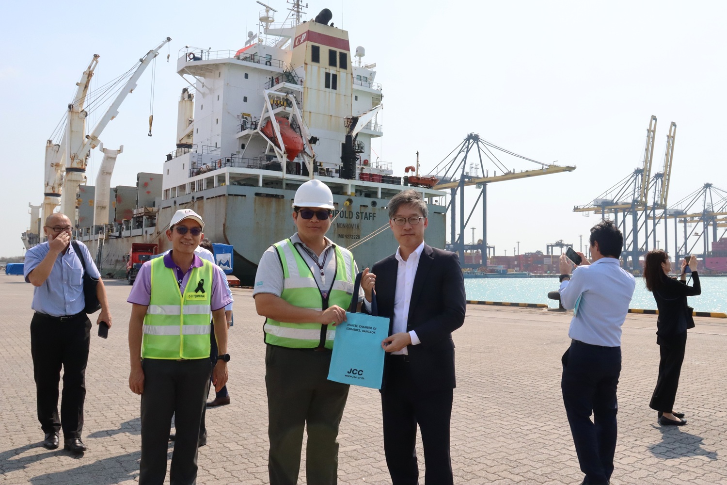 On February 4th, the Transportation Division (chair: Mr. SUGIMOTO Ryosuke, MOL Shipping (Thailand) Ltd.) held the inspection Laem Chabang Port Inspection Tour located in Chonburi. This was the Thailand's largest deep-sea port and a vital hub supporting the supply chains of Japanese companies operating in Thailand. During the visit, participants gained an overview of the entire port area and toured terminals handling containers, automobiles, and passenger ships, deepening their understanding of port operations.