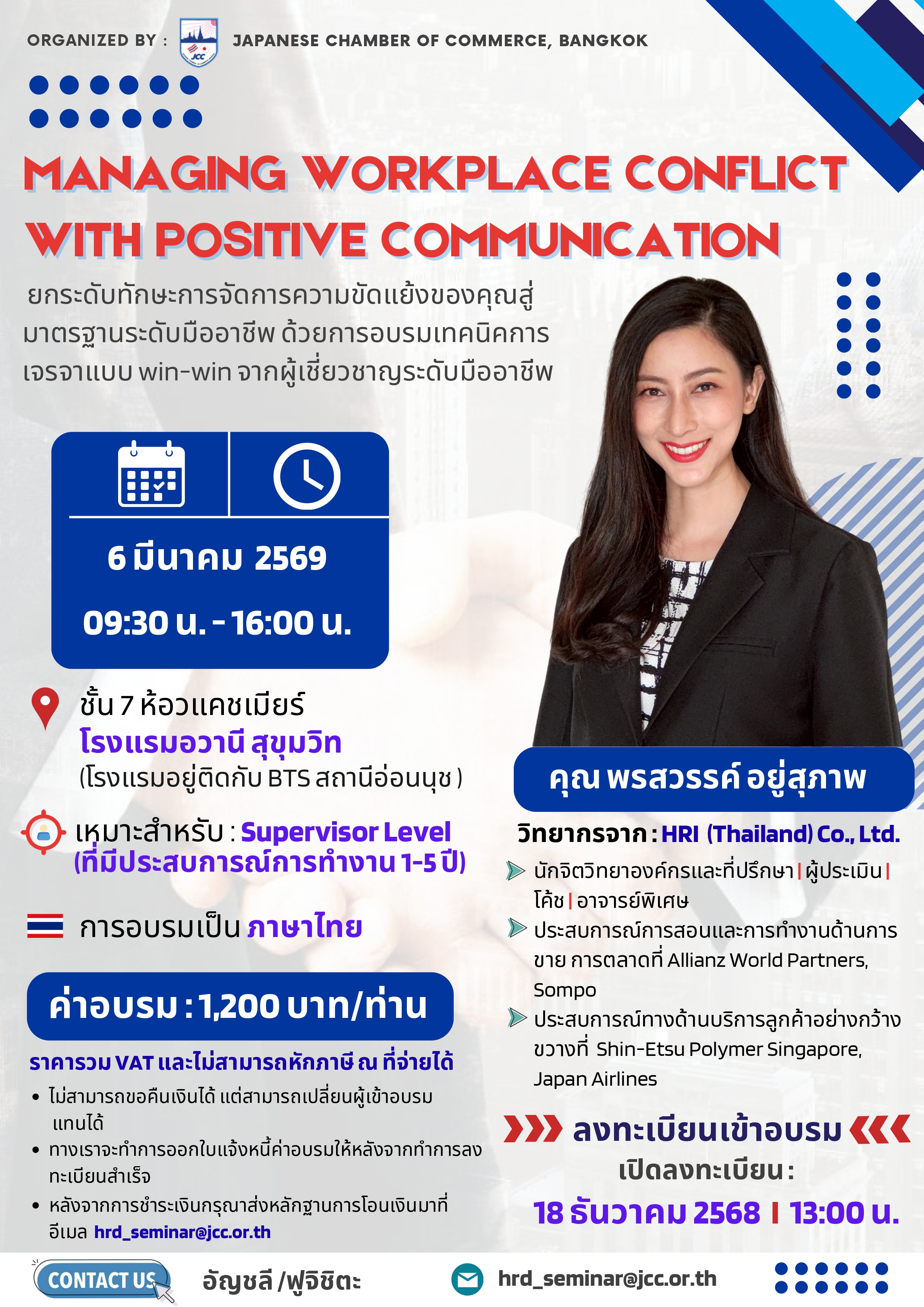 กับการอบรบในหัวข้อ “Managing Workplace Conflict with Positive Communication” จากวิทยากรผู้เชี่ยวชาญ