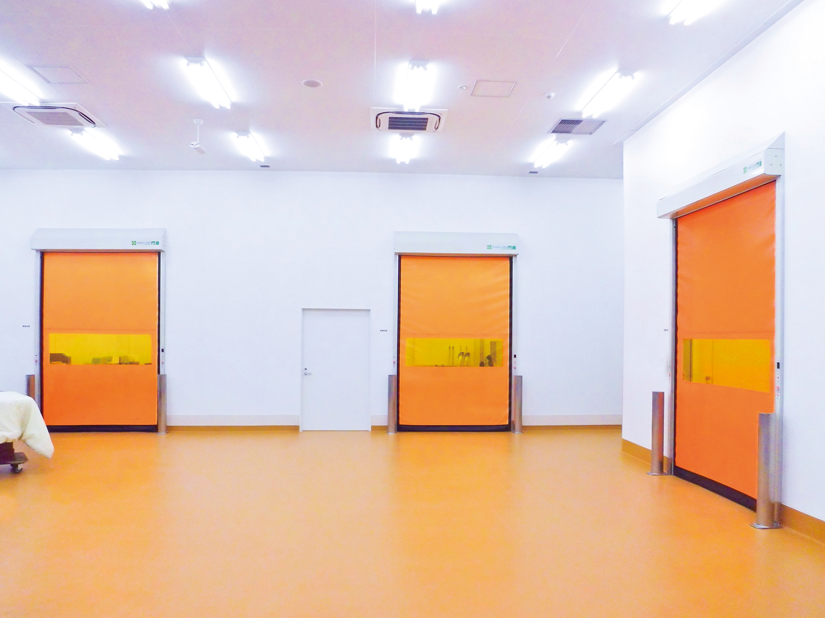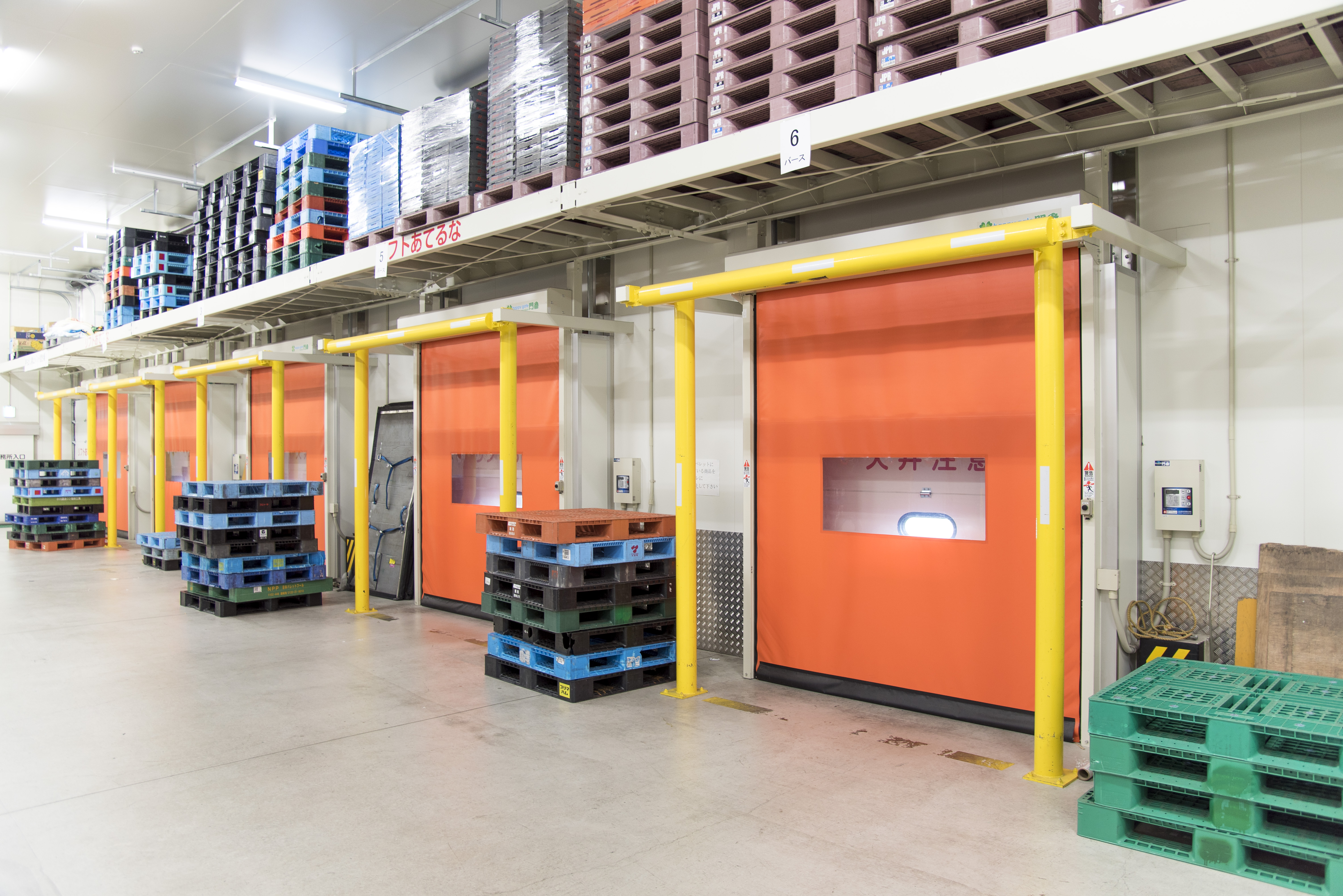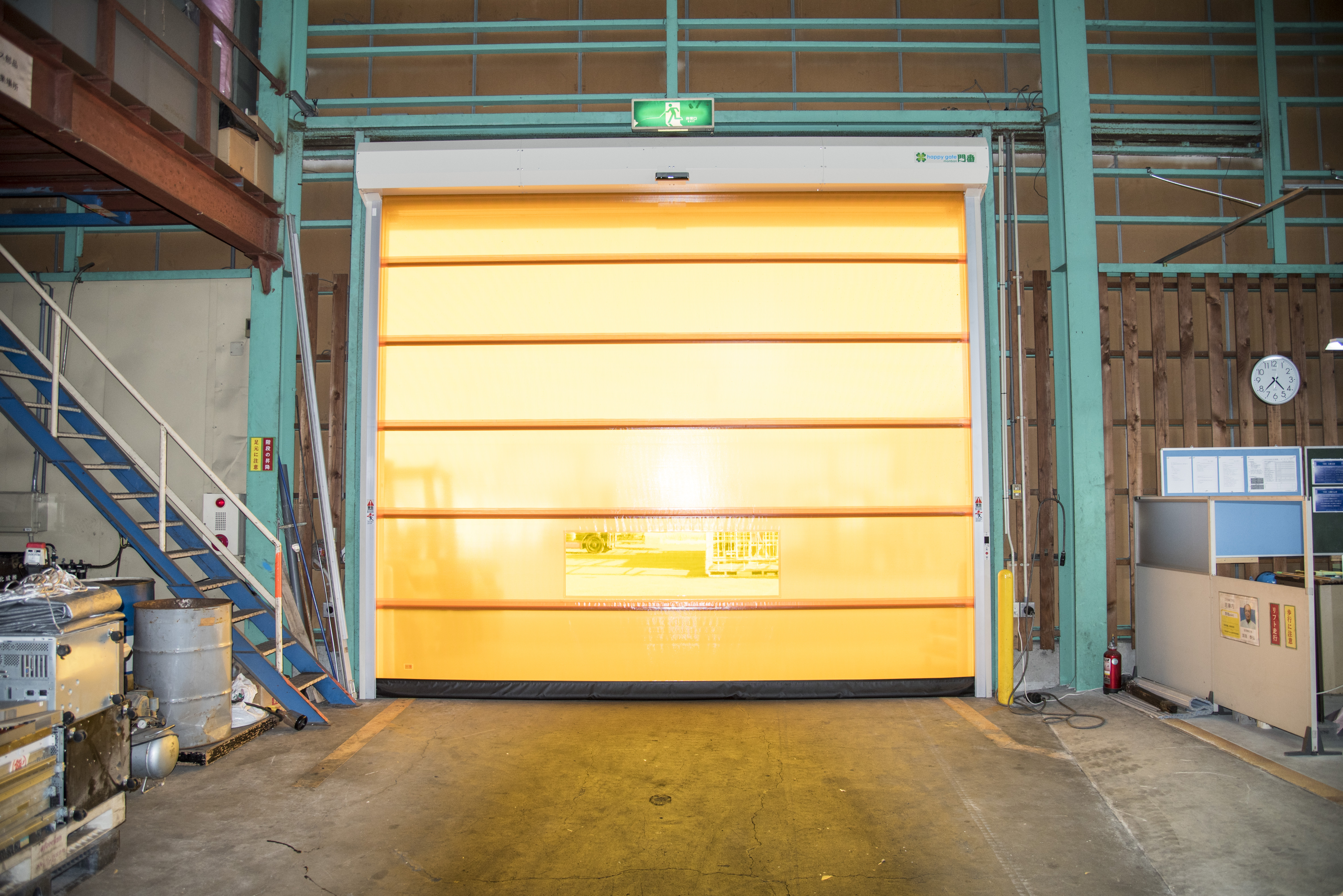 ハッピーゲート門番は工場や店舗などに取り付けるシートシャッターです。空調・省エネ効果を高めるとともに、防虫・防塵にも効果を発揮します。