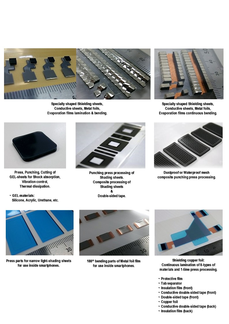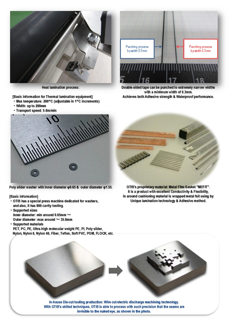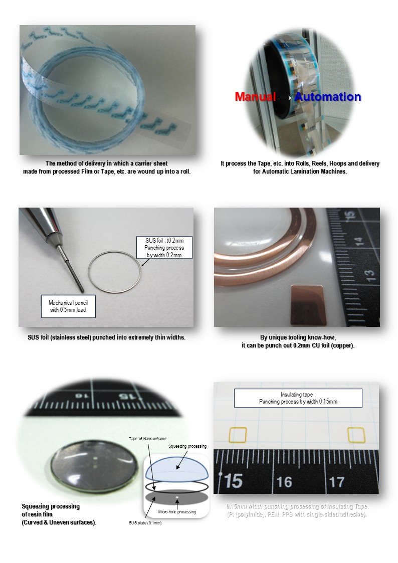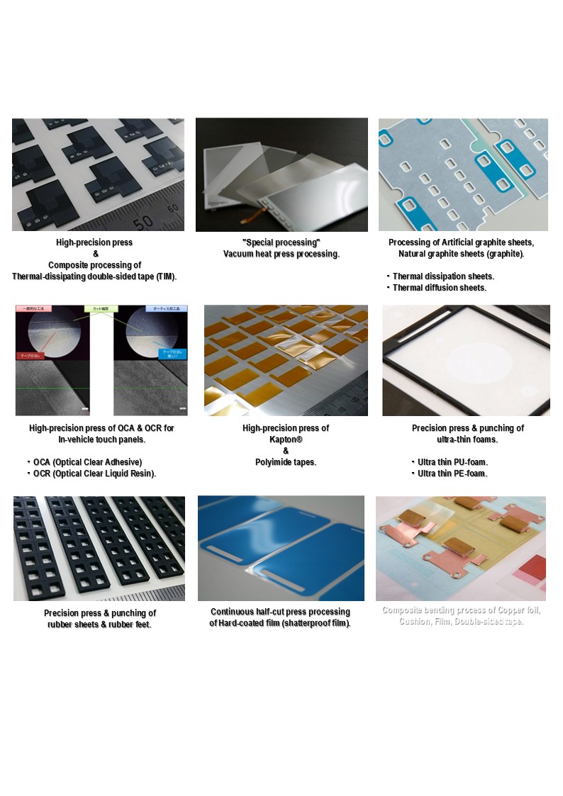情報通信端末・電子部品・自動車・メディカル業界に対する、フィルム・テープを中心としたエレクトロニクスパーツの製造と供給