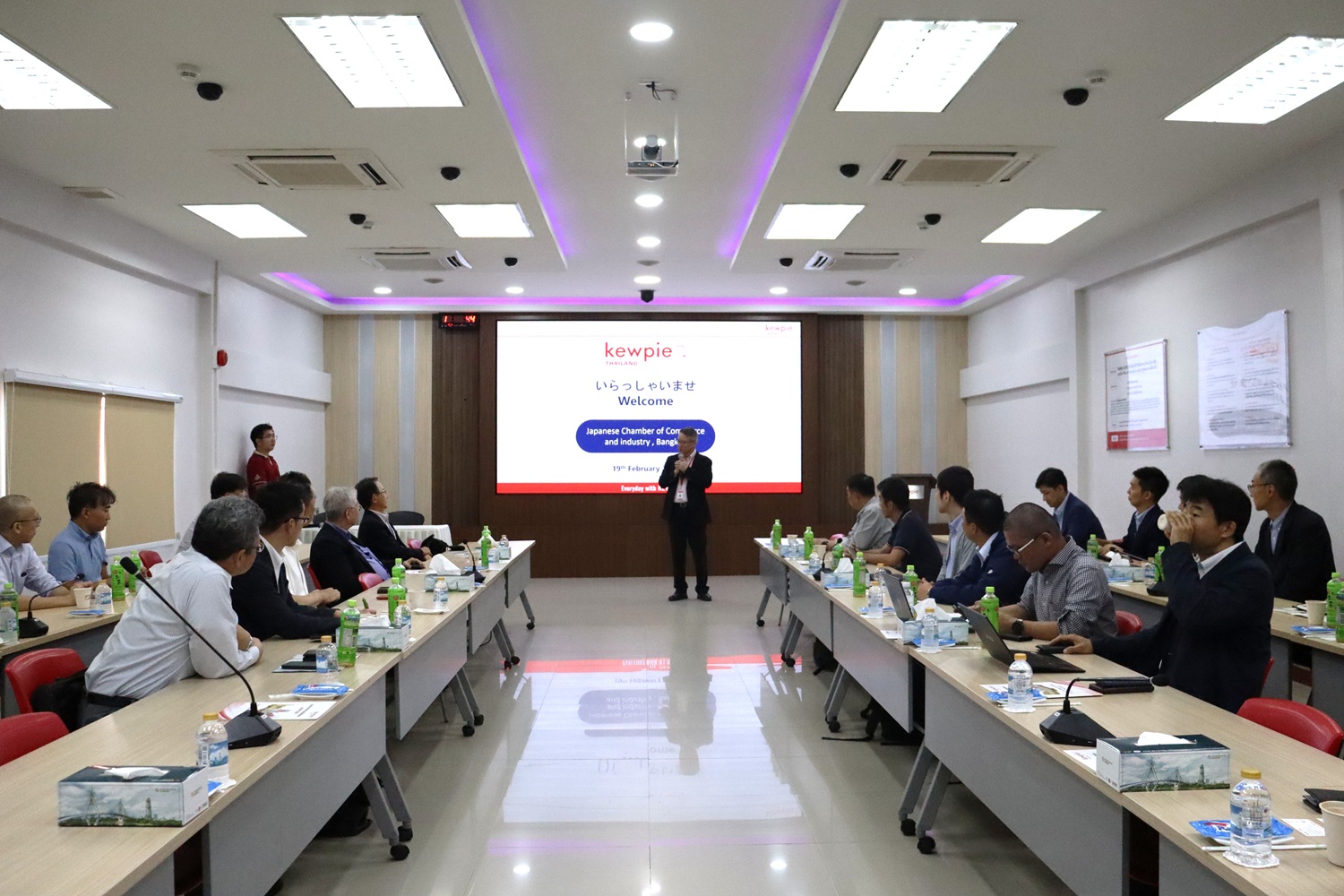 見学先は、ラチャブリー県にあるキューピー(タイランド)社の新工場で、主にマヨネーズ、ビネガー、ドレッシングなどの食品を生産しています。同工場では、太陽光パネルの増設、排水処理システム、バイオマス燃料を使用するなど、環境配慮やサーキュラーエコノミーの取り組みも積極的に進められており、持続的な成長に向けた取り組みについて知る貴重な機会となりました。